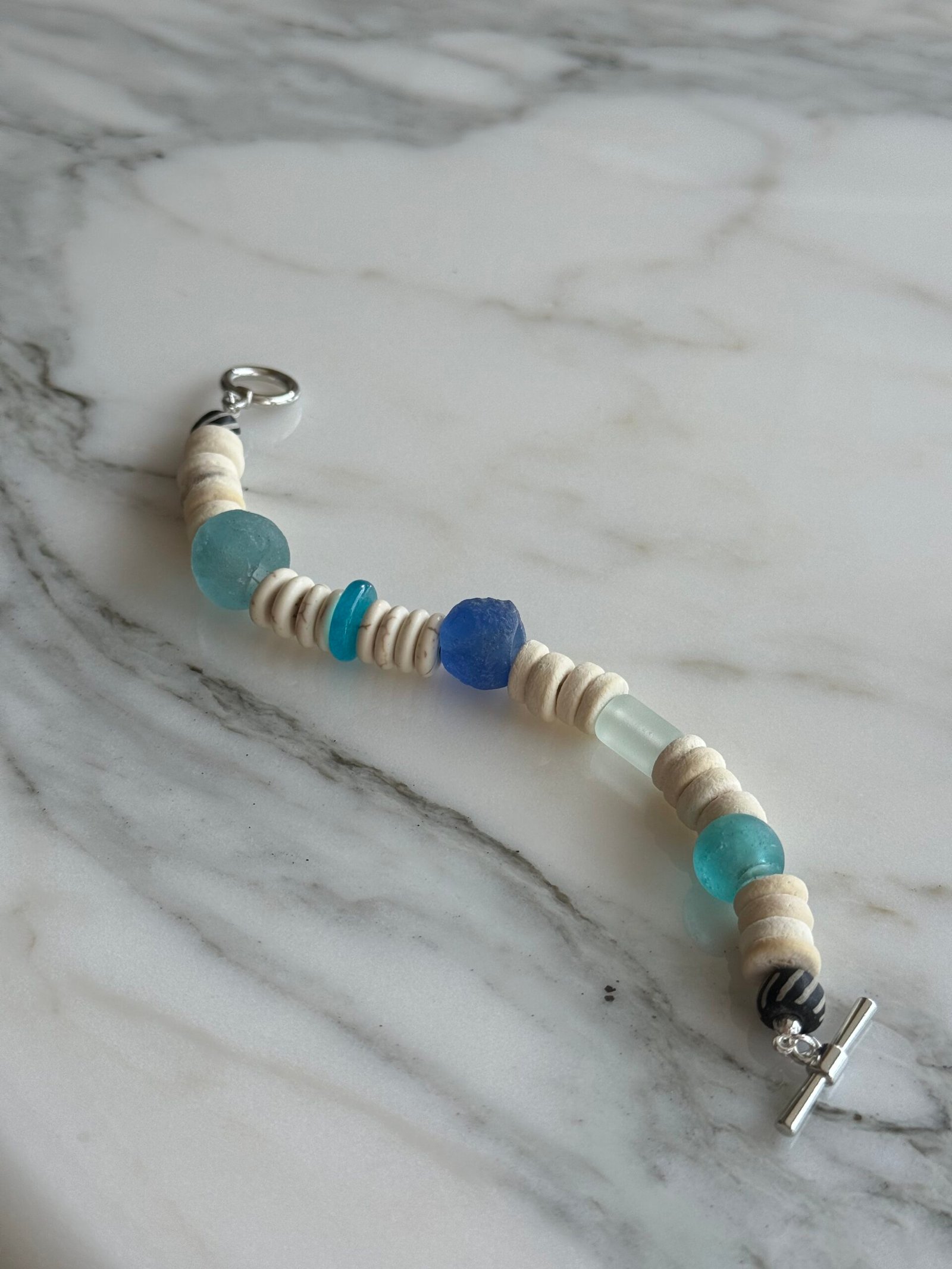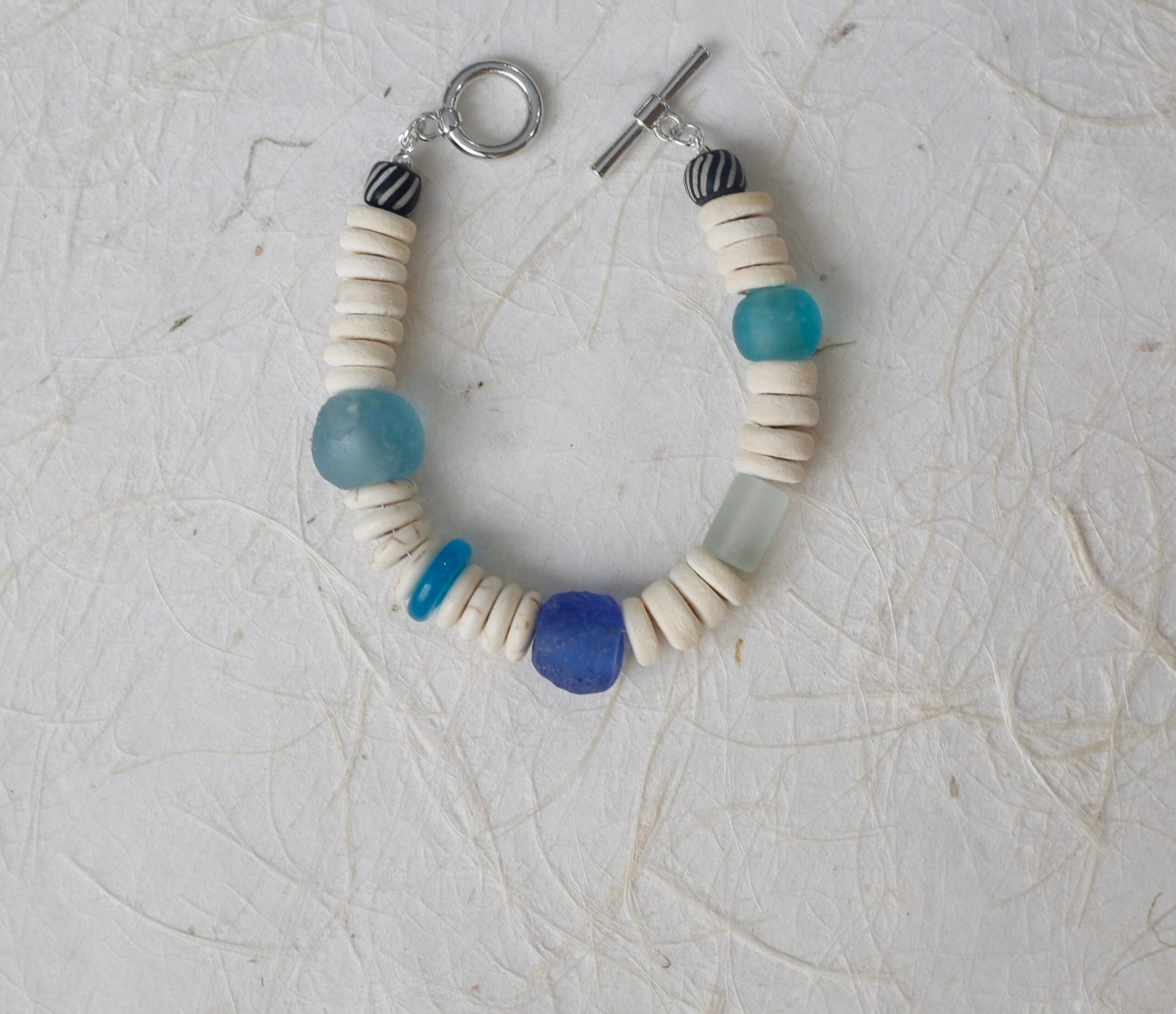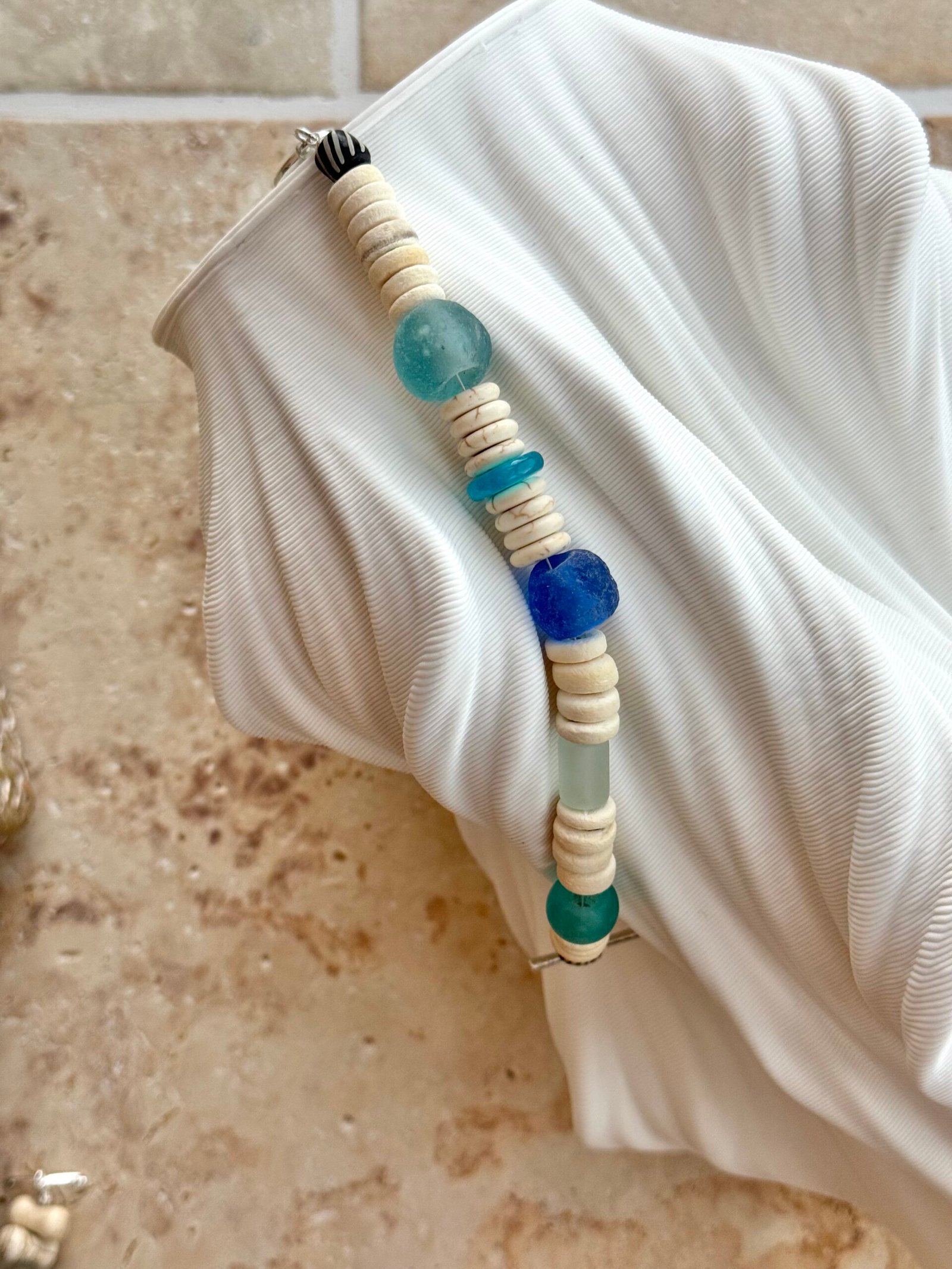 African Recycled Glass Beads-ocean blue,Aqua blue,Ice blue.